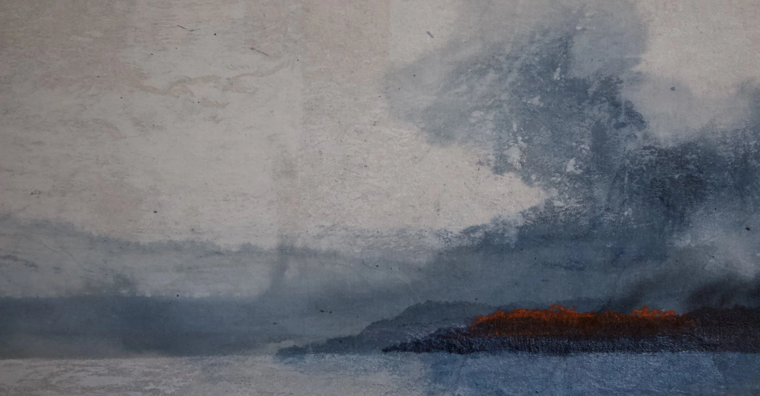Detail from THE EVENING BREEZE LIFTED US ALONG 48 inches x 18 inches, acrylic, ink and oil pastel on cradled birch panel, 2022. $1500 CAD SOLD