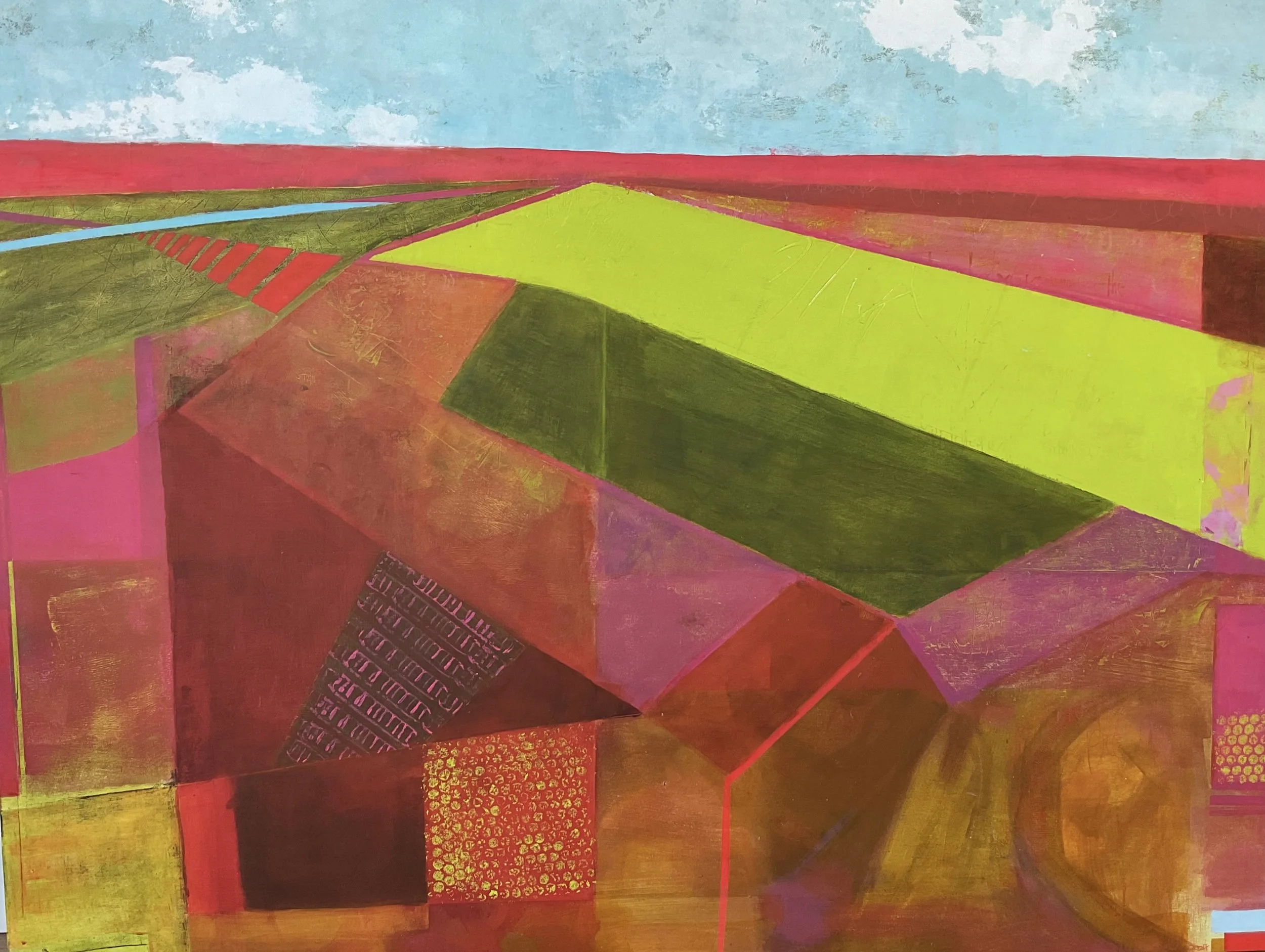 PASTURES OF PROMISE Acrylic and ink on birch panel, 48 inches x 36 inches, 2024. $2250 CAD