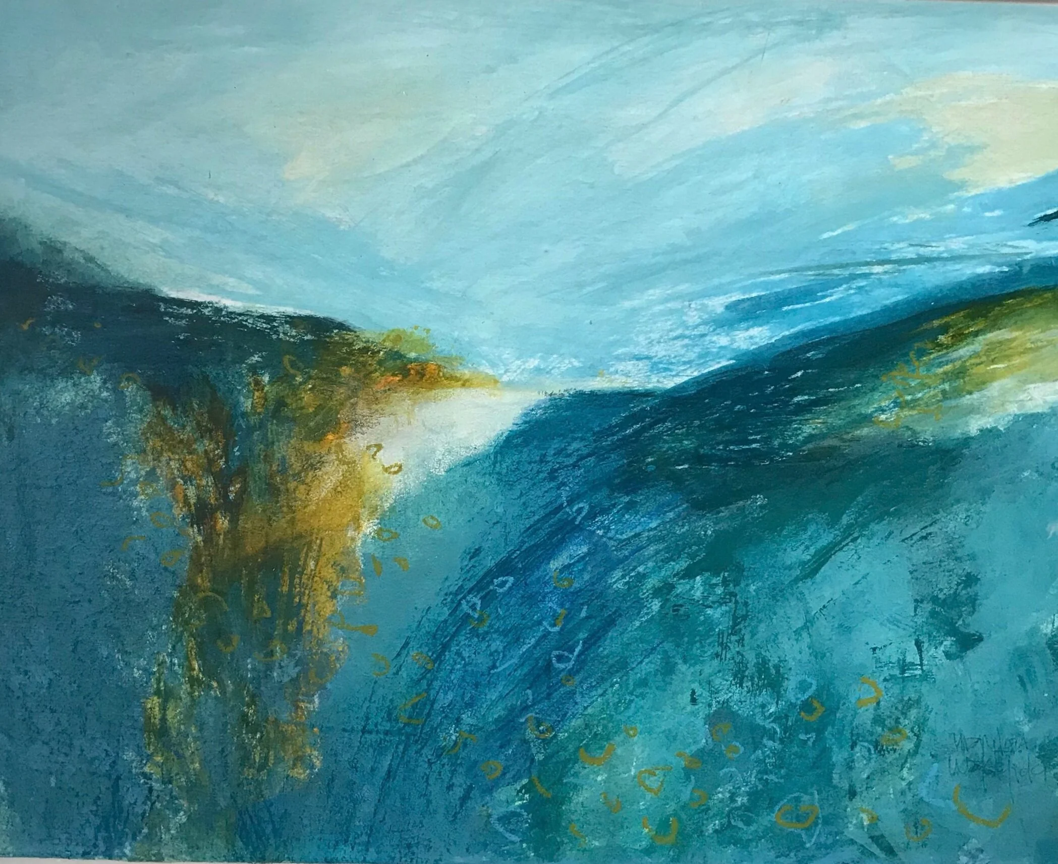 I THINK WE CAN GET THERE FROM HERE, acrylic and oil pastel on paper mounted on canvas, 16 inches x 13 inches (framed), 2021. $400 CAD SOLD