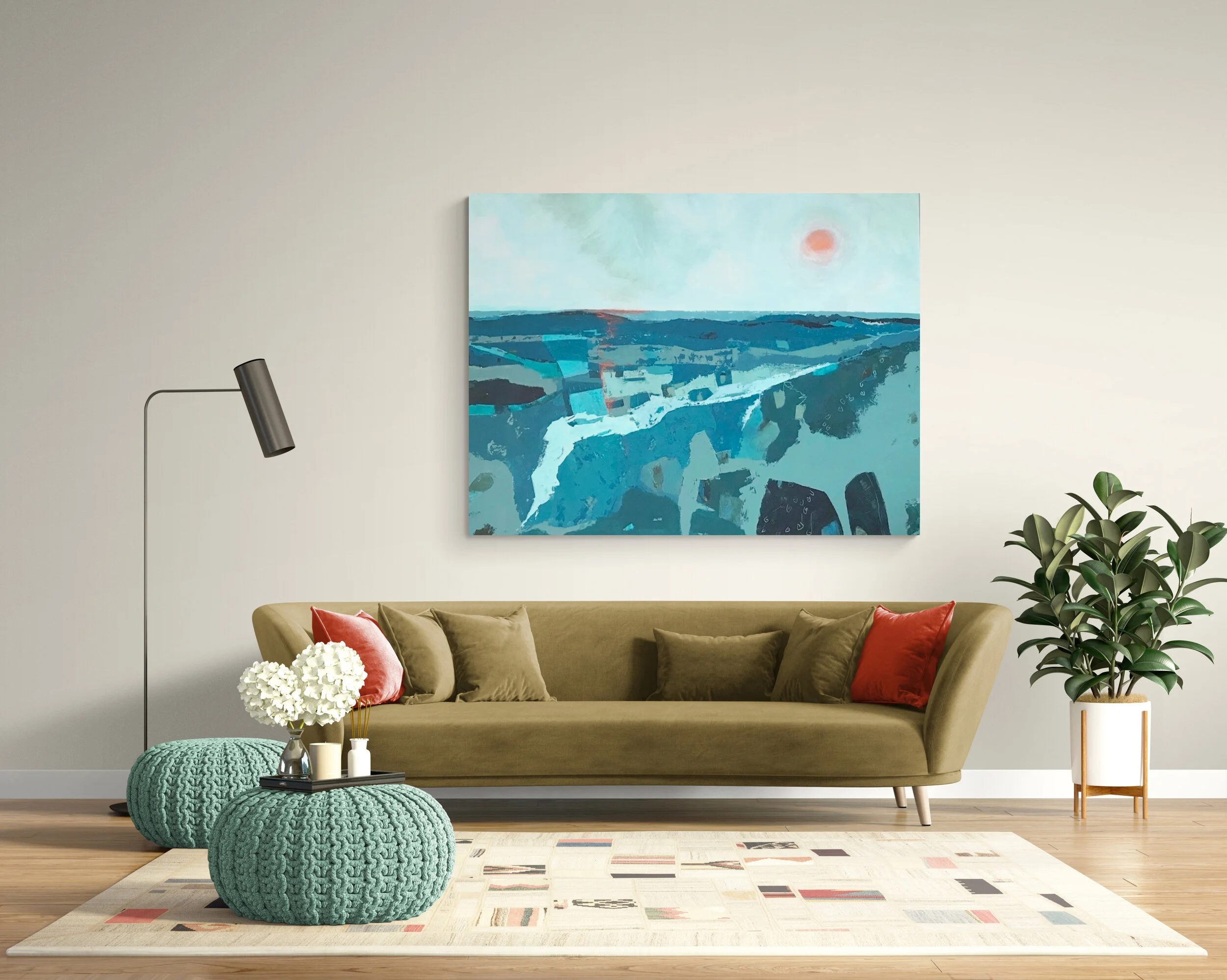 LET’S TAKE THE LONG WAY AROUND, 48 inches x 36 inches, acrylic and mixed media on canvas. Commissioned work, 2021. SOLD