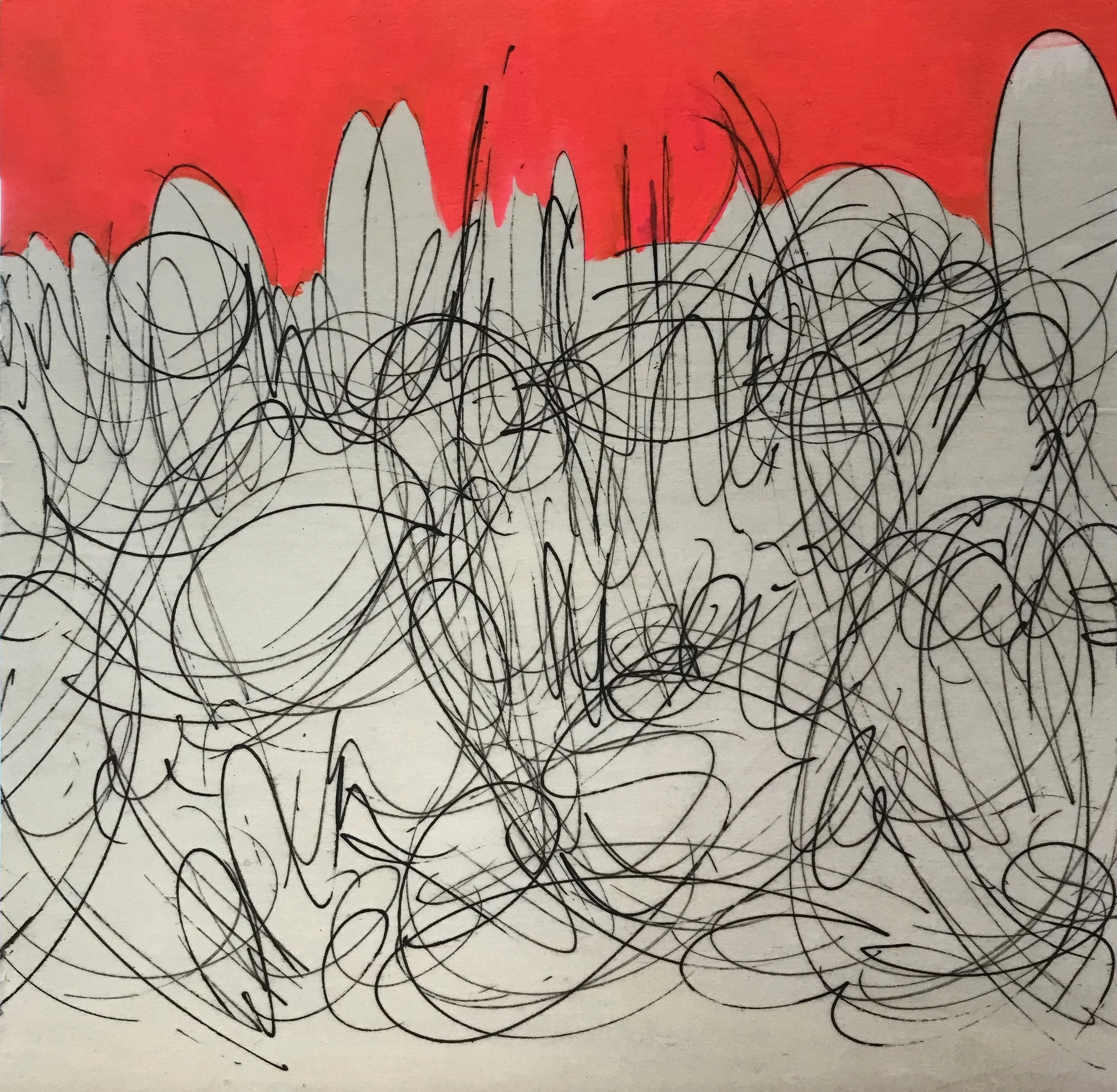 LOOKS LIKE IT’S GONNA BE A SCORCHER, Acrylic and ink on mulberry paper on cradled birch panel, 12 inches x 12 inches, 2021. $300 CAD SOLD