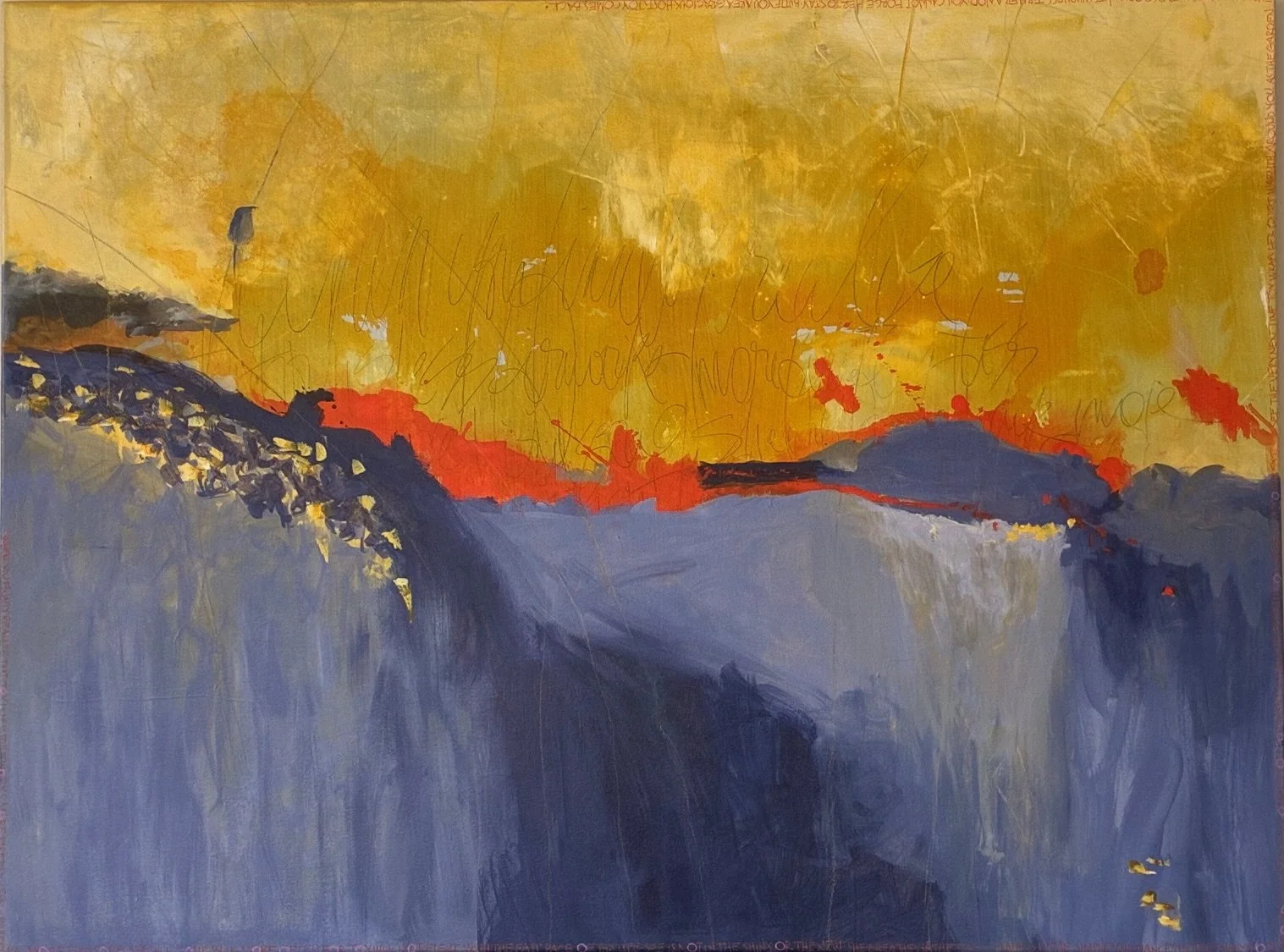 ONE MOMENT acrylic, ink, and oil pastel on canvas, 40 inches x 30 inches, 2025. This painting was juried in to the recent Metchosin Art Pod exhibition ‘Fleeting’ and was awarded the Juror’s Choice Award.