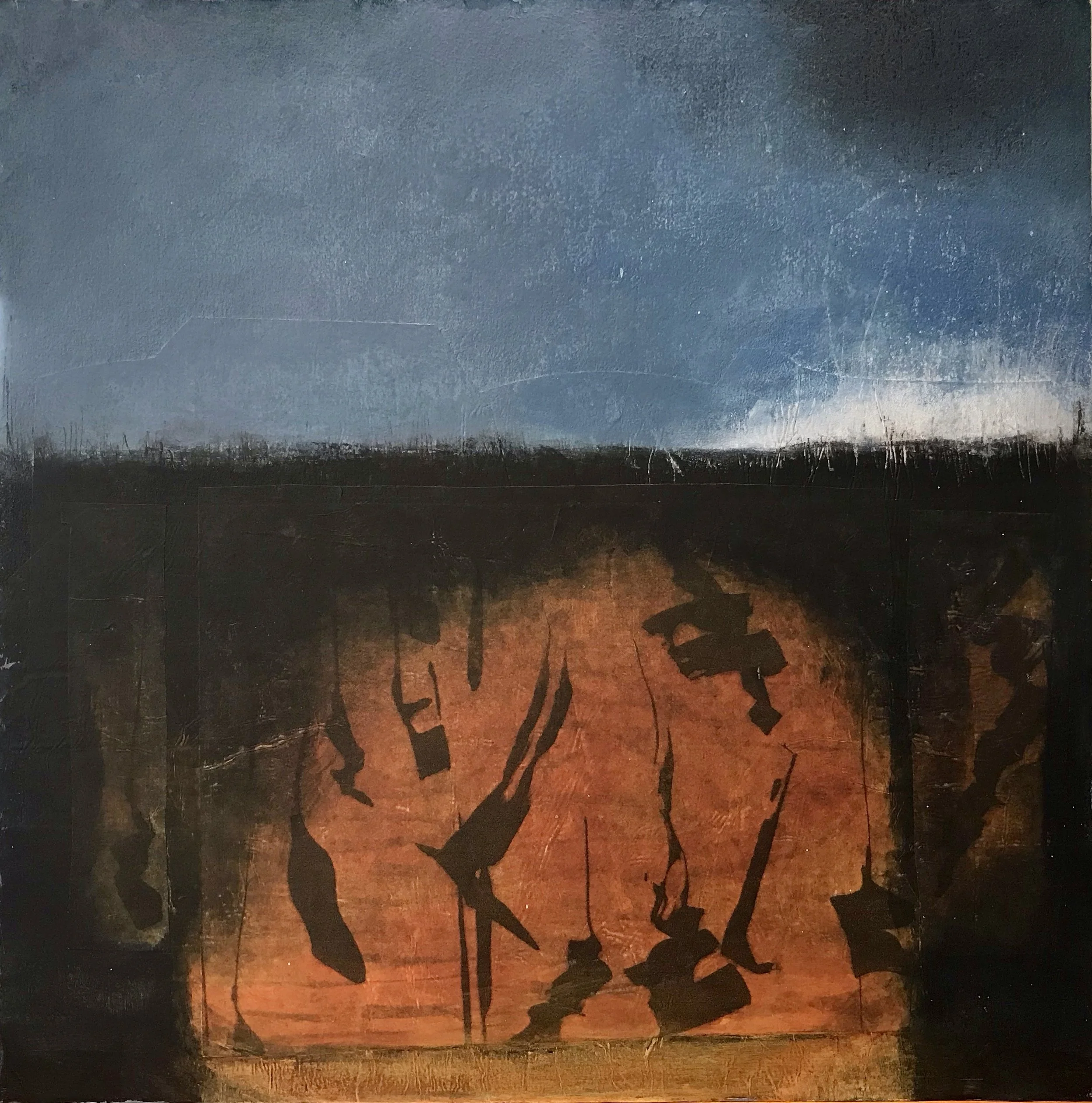 SHE BURIED HER THOUGHTS WHERE NO ONE COULD FIND THEM, Acrylic and mixed media on cradled birch panel, 12 inches x 12 inches, 2021. $300 CAD SOLD